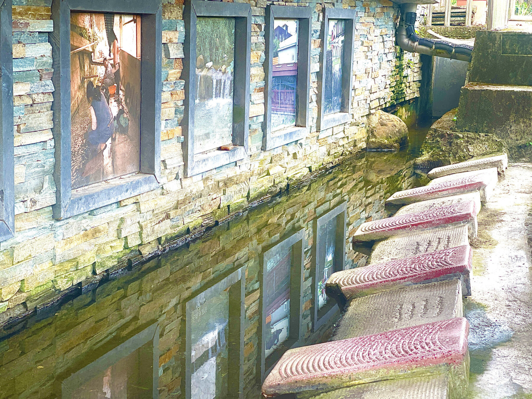 1970 年鄰近的明德水庫竣工,讓獅潭、新店村一帶被列為水源保護區。在鳴鳳古道與新店老街中隔著一條新店溪,不論是從古道出來前往老街,或是從老街上古道,都會途經吊橋,站在橋上上往下探,除了乾淨的水源,也能看到因水源保護而來的護魚成功。2001 年獅潭新店茶街造街,成為今日老街樣貌的前身,也是來到獅潭另一個特色點。