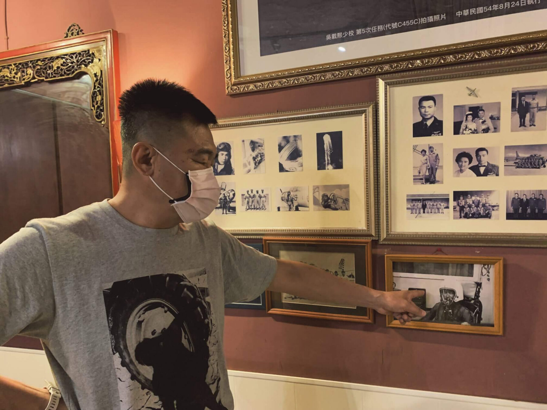 指著一張民國54年拍攝的黑白航空照,老闆吳興華娓娓道出家父曾是黑貓中隊的一員。黑貓中隊創立於國共內戰期間,是一支與美國中央情報局合作的秘密小隊,執行元首層級的「快刀任務」,負責高空偵測共產陣營。