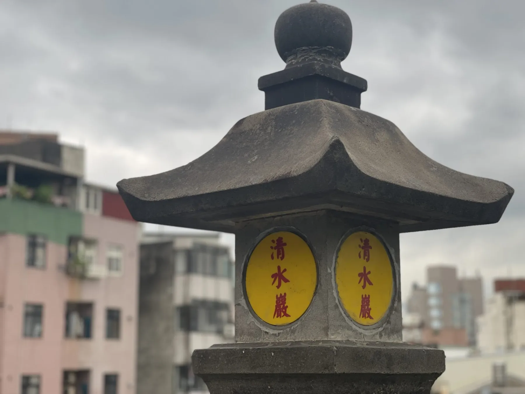 從福祐宮一旁小路往上行,則會來到淡水清水巖,其和福佑宮、淡水龍山寺與淡水鄞山寺合稱為「淡水四大廟」。清水巖供奉清水祖師蓬萊老祖,祭祀閩南安溪高僧清水祖師。傳說蓬萊老祖神像在一次出巡時,曾顯靈落鼻示警,此時突如而來地震讓房屋盡毀,人們因為離家彼此走報、圍觀神像而得以無事,從此落鼻祖師一名就不脛而走。二戰期間有兩枚炸彈落在清水巖但未爆炸,居民也認為是祖師顯靈護佑,後移除火藥修成燭台,在正殿兩側至今還能看見。