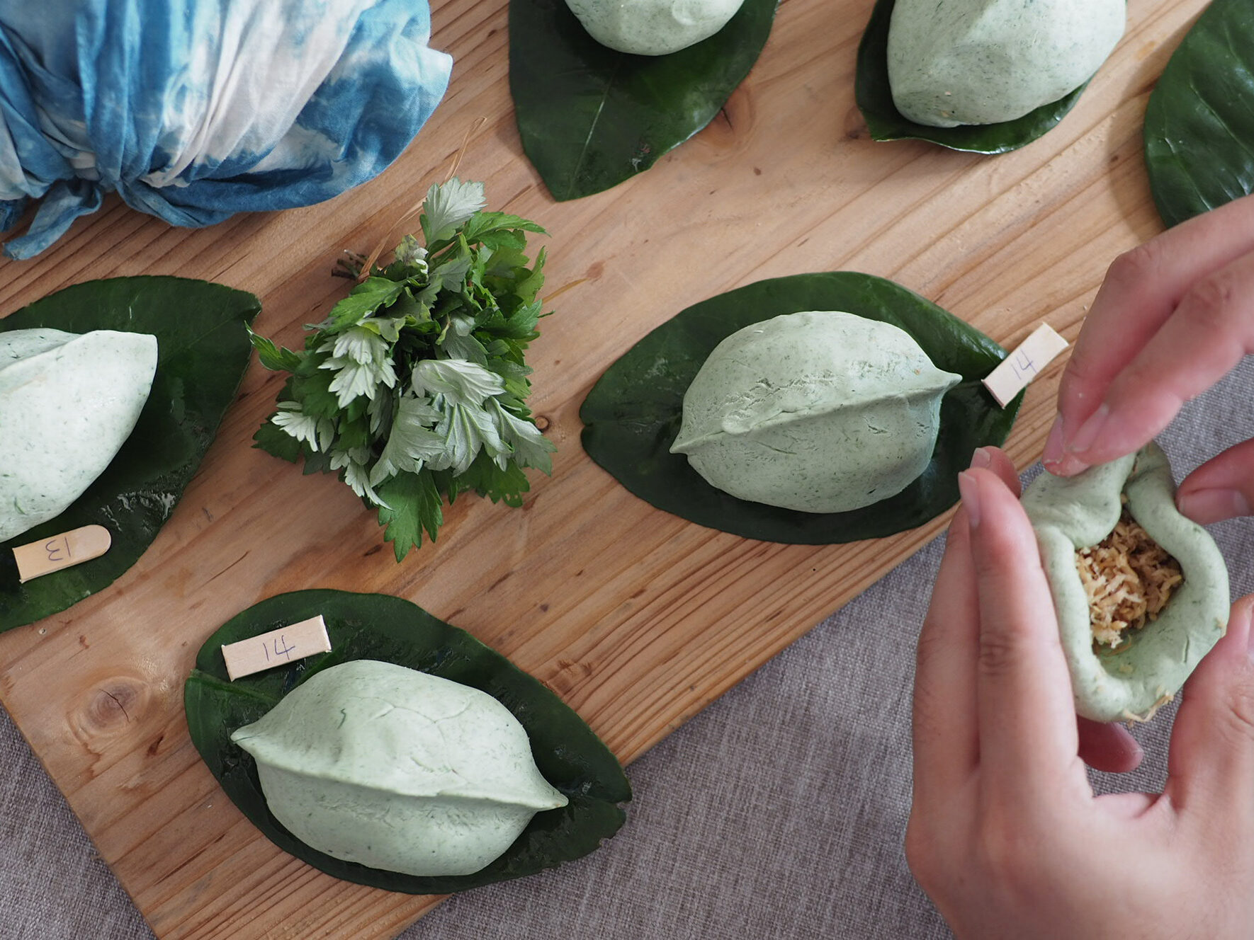 到了南埔,不能錯過客家米食-菜包的親身體驗!將混合艾草汁、糯米粉及在來米粉的米團子捏成小塊,塞入蘿蔔絲、香菇、油蔥等內餡,或許捏成台灣形狀,或許堅持傳統裝豬仔竹籠造型,當墊上抹油後的柚子葉,送入蒸籠,就成了歸途上的回憶小點。