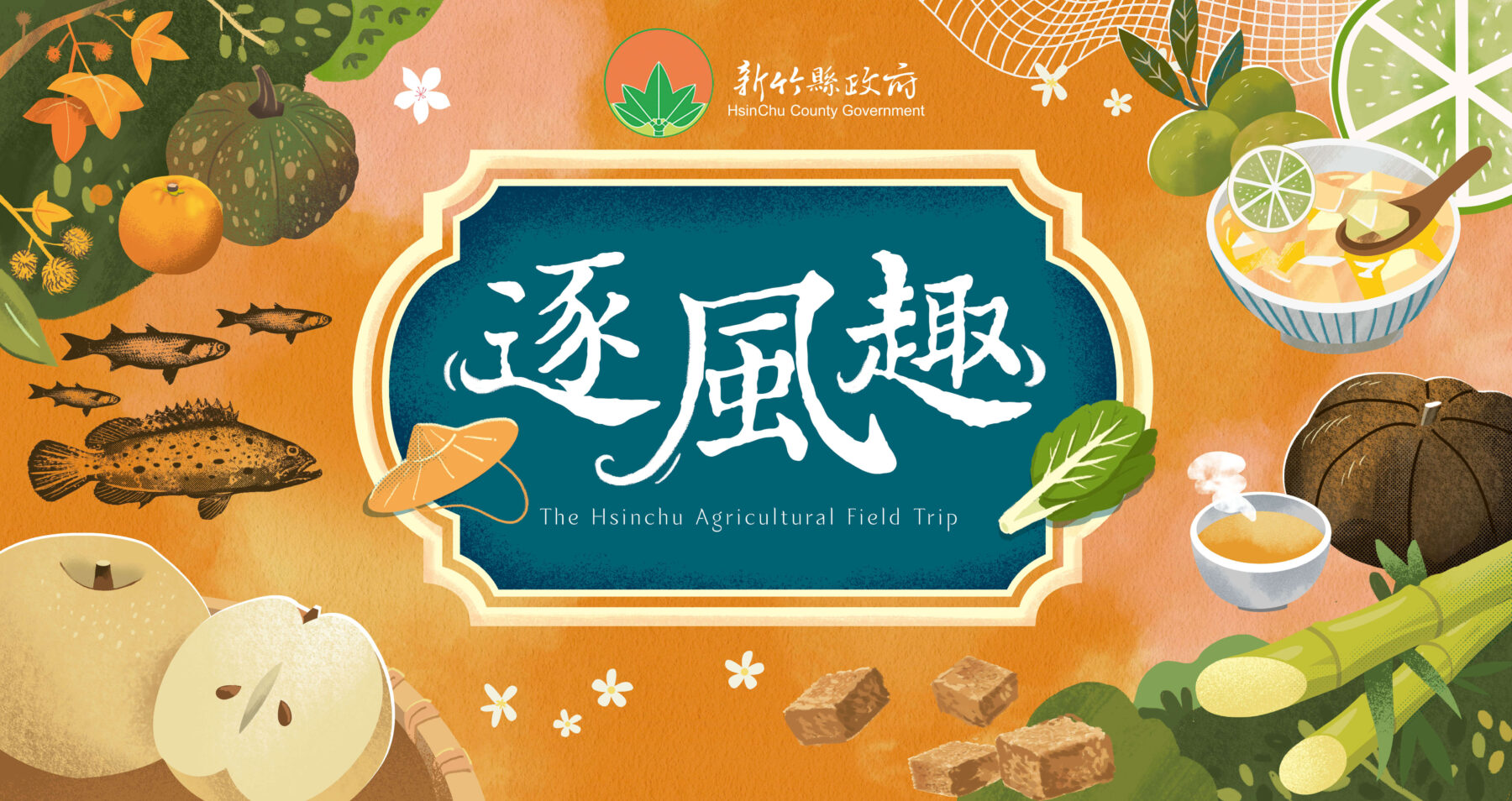 「 逐風趣 」為全新打造,以 竹縣漁農物產 設計的深度旅行品牌,首年主題:【 九降風 & 秋收 】,九降風形塑新竹帶獨特在地物產樣貌,帶領旅人追逐著九降風的路徑,穿梭在竹縣各式物產原產地,感受秋收意象。