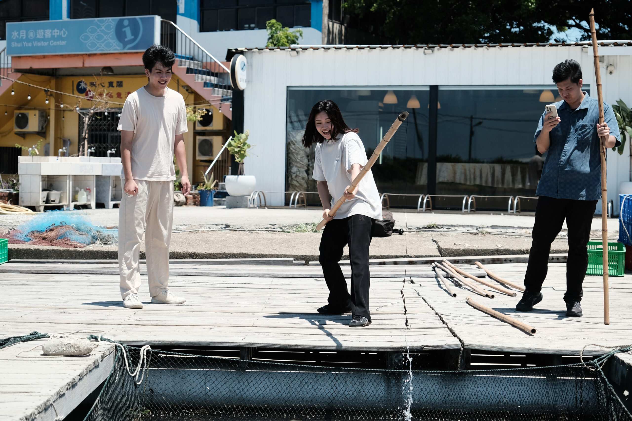 新港巡禮的收尾,走進在地深耕多年、依傍在港灣旁的『藍鯨魚寮』,魚寮主人堅持友善海洋的養殖技術,引入天然海水、並讓魚寮成為天然的生態系,走近魚塭旁,可看見依附在網上的各式貝類、藻類;往遠一點看還能看到大小不一的魚蝦悠遊的在池子裡賽跑。