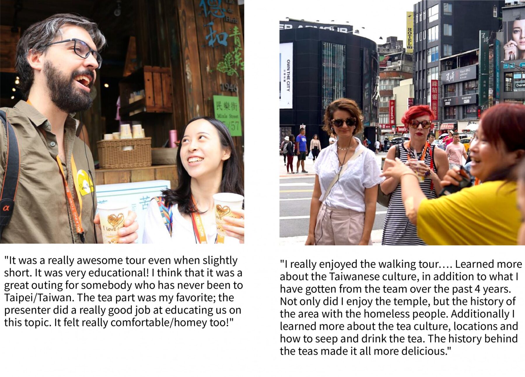 WALK in TAIWAN customizes the tour according to the guests’ tight schedule.No matter one-hour or one-day tour, WALK in TAIWAN could deliver the most local experience for you, including walking tour, tea ceremony, DIY activities, etc. We could also arrange transportation and meals.