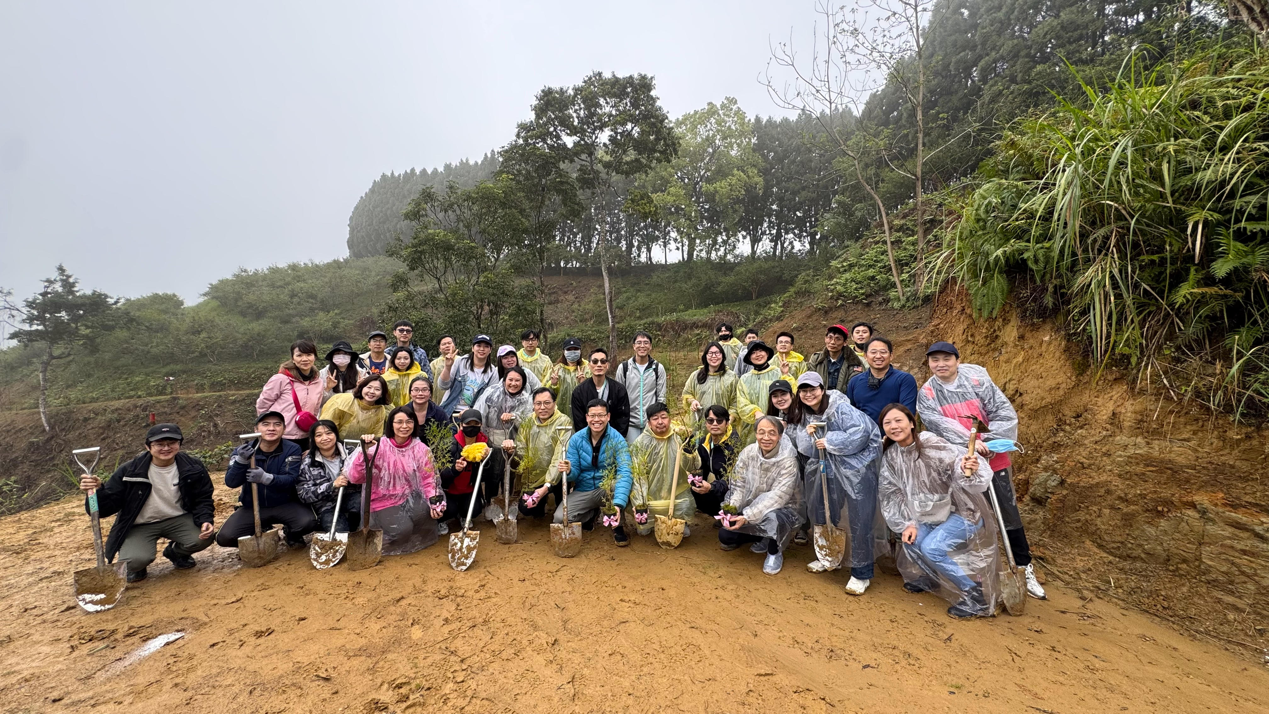 來賓們捲起袖子、踏入連日雨天的泥濘中,親身走進尚未開發的荒地,為地球固碳,種下希望的肖楠樹。分工合作下,各組夥伴搬運樹苗、提水、拿鏟,小心翼翼地將肖楠從盆栽取出、鬆開根部,於標示點挖土種植,綁苗固定,最後挑水灌溉,確保樹苗順利扎根。雖然並不輕鬆,但我們來真的,每一步都細心呵護,為土地盡一份心力。