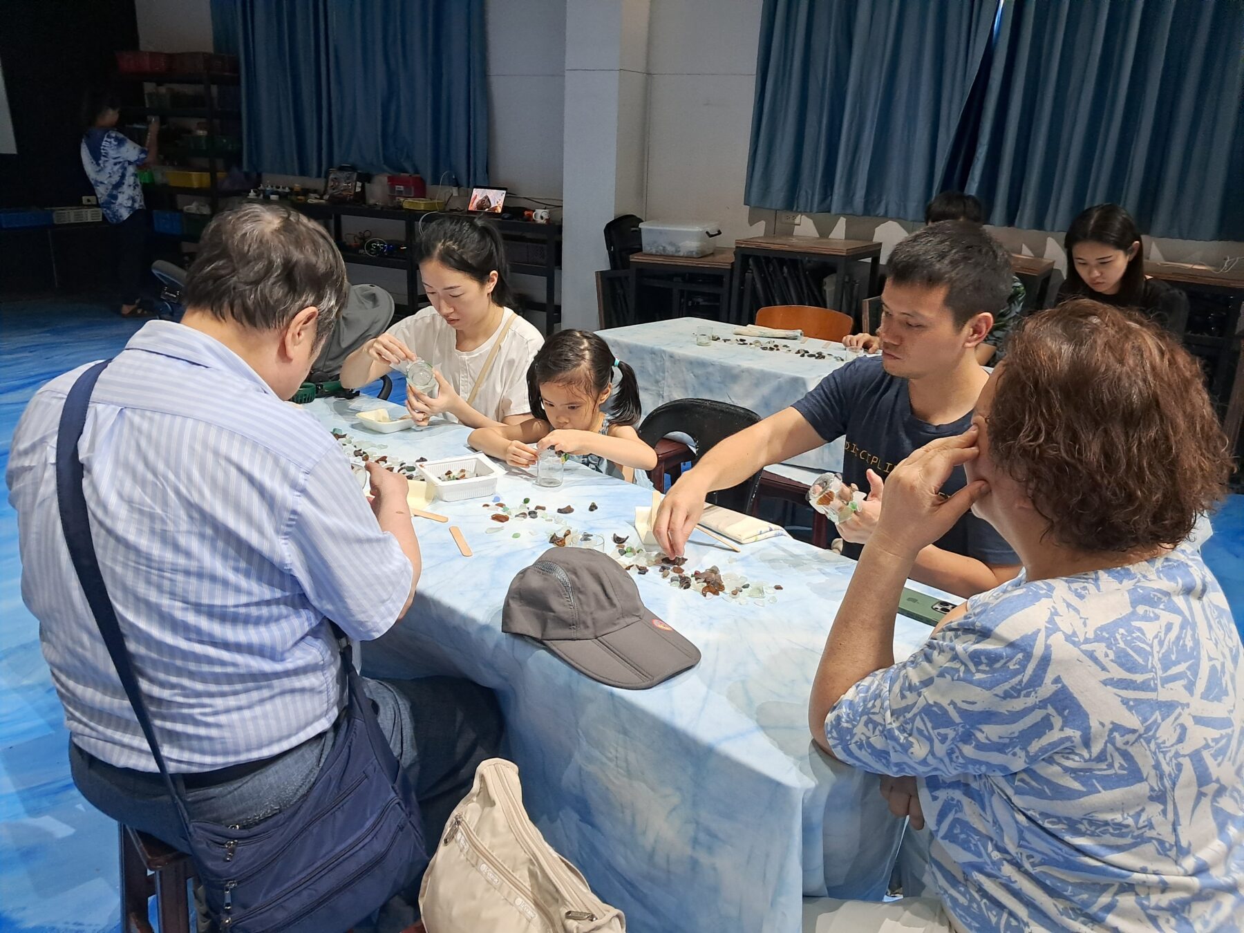 在這個以「友善環境」為核心的永續聚落,團隊體驗了以海洋廢棄物為素材進行創作的過程。原本漂流在岸邊的玻璃碎片,經過時間與工藝洗禮,成為我們手中溫潤的馬賽克夜燈。