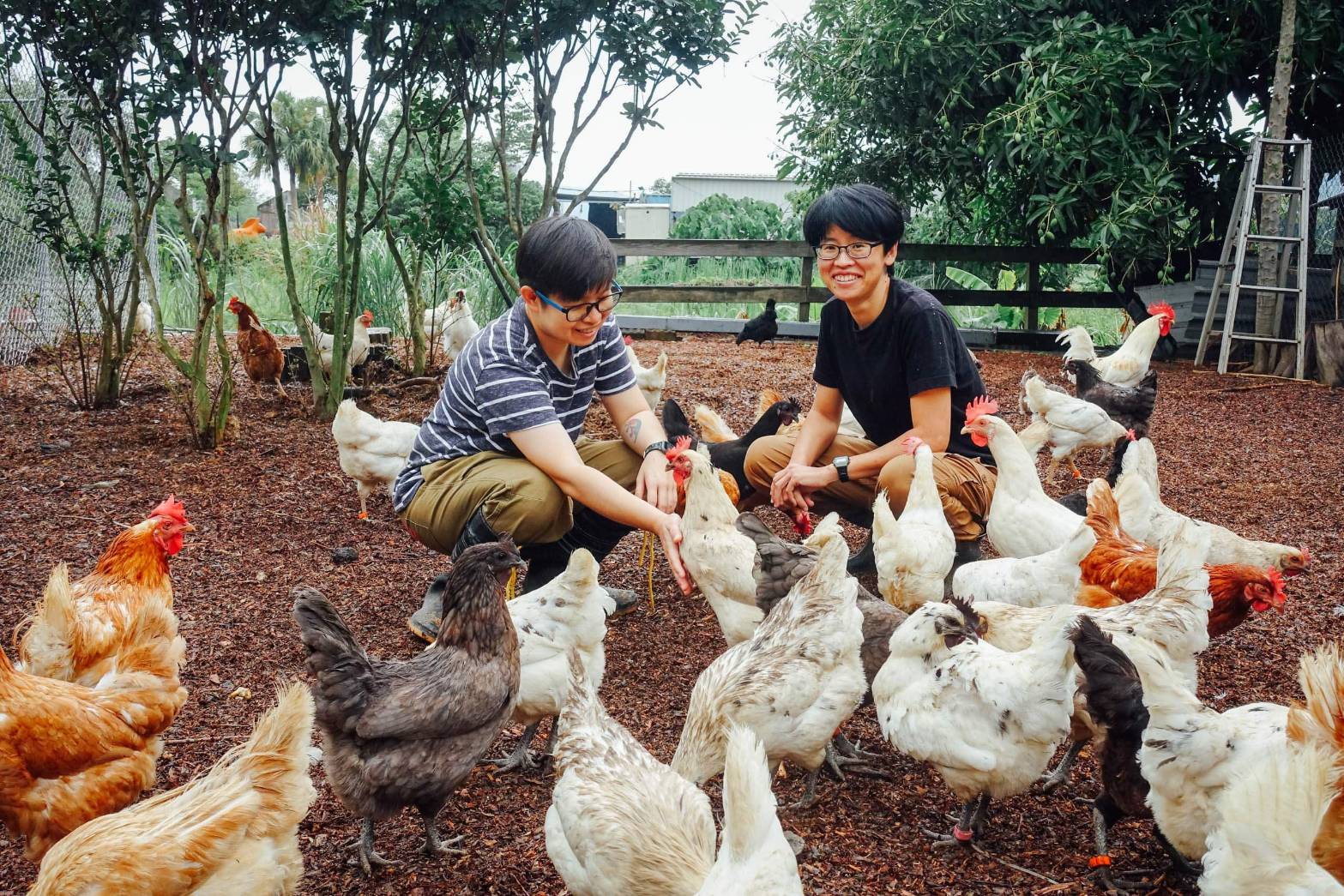 來到隨野家農場,chill 嗨嗨的雞自在奔跑在放牧場地中,跟蛋雞們對到眼的一眼瞬間就知道:「是快樂的雞。」