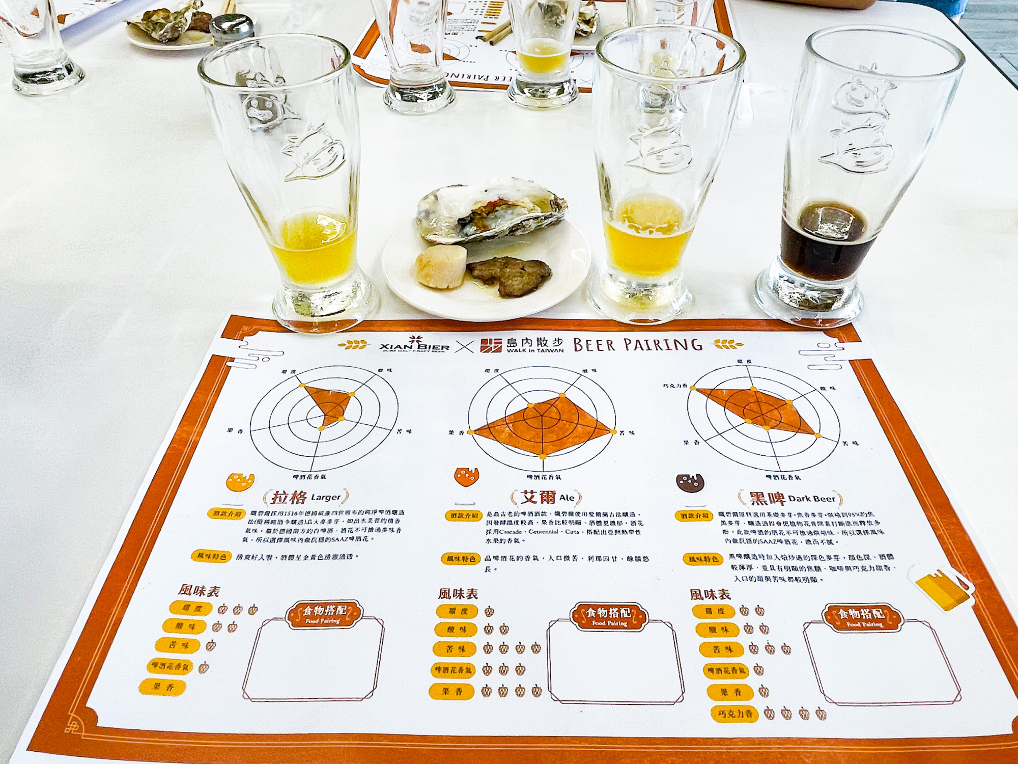 再以啤酒品評卡,一次認識拉格、艾爾、黑啤的各有滋味!若您只喝一杯而嚐不出差異,廠家也豪氣提供無限暢飲,成為一日啤酒品評師!品酒之餘,將以在地養殖、善用九降風風乾的一口烏魚子佐酒款待。讓一口在地烏魚子、一口當地精釀的香山味道自然深植人心。(可加購現烤伊比利豬、生蠔、干貝等佐酒食材)