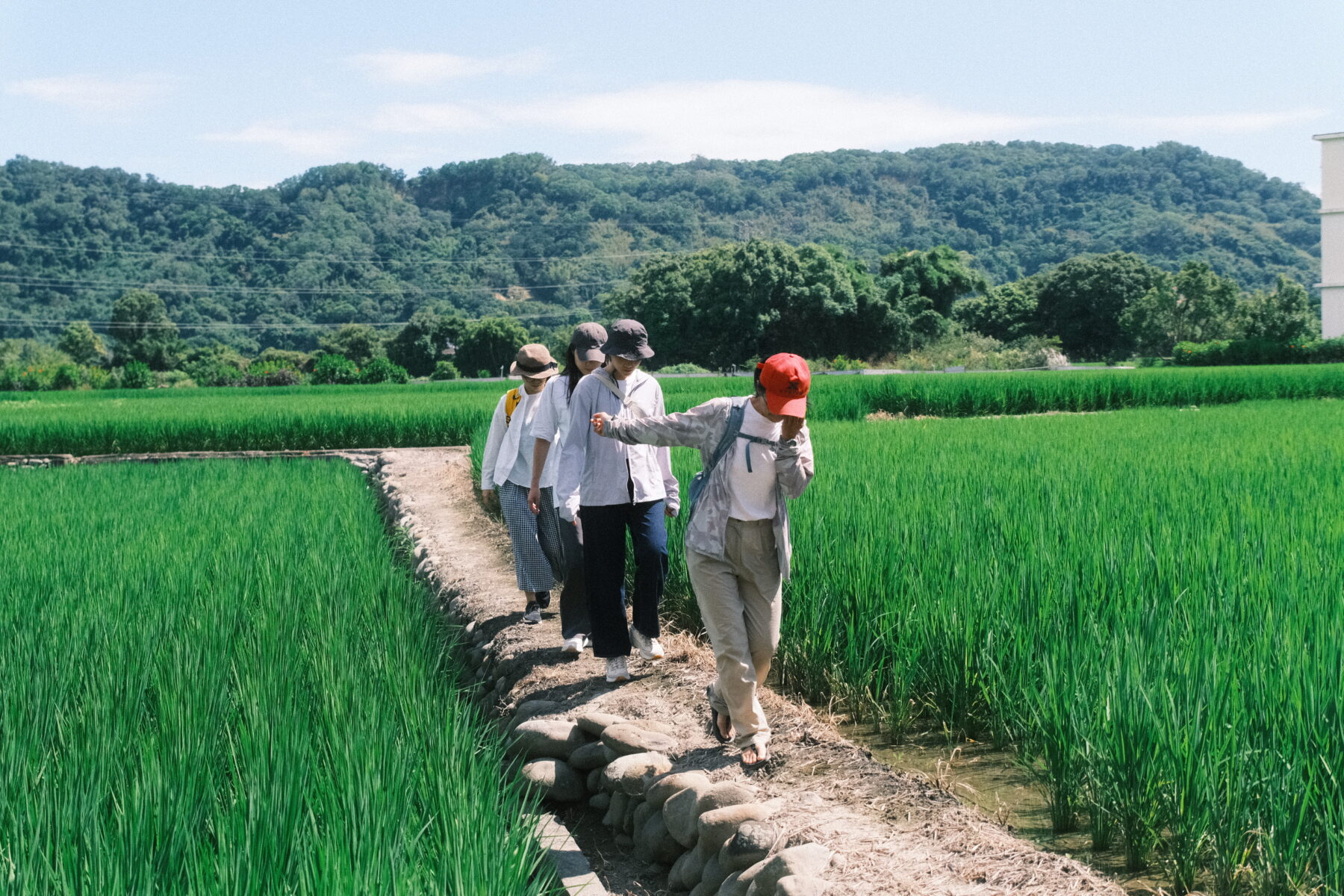 從大馬路拐進竹22鄉道小路,很難相信距離高鐵站不過5分鐘車程,彷彿穿過結界一般,眼前已經是另一個農村世界。遠離車水馬龍的城市喧囂,整片稻浪隨著新竹的風發出沙沙聲響,今天要在稻田邊開啟一連串的五感練習!