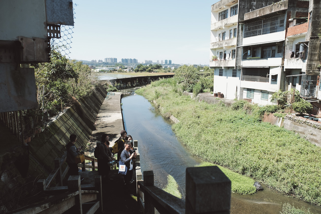 原來在街邊古橋旁的老屋,是因應本地地形特色而生的隱藏建築形態,正面兩層樓,繞到水圳邊就出現地下一二層樓,在導覽老師的引導下,芎林的地貌與生活特色都鮮明了起來!