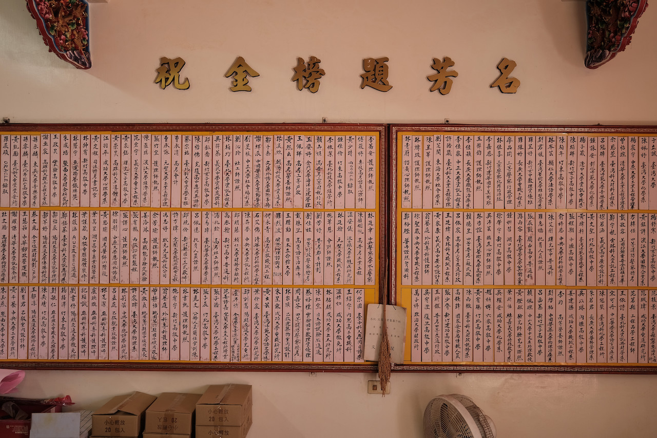 文林閣現為全台最大的文昌廟,不只莘莘學子,連求取功名的社會人士也仰賴文昌帝君的護持,來看看文昌帝君的業績牆上有哪些你聽過的公司或學校吧!