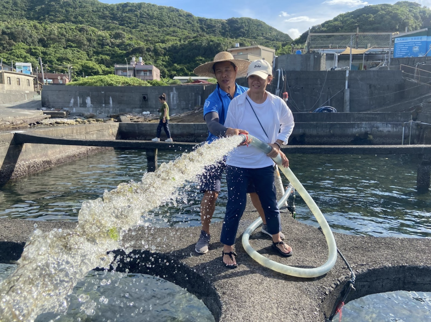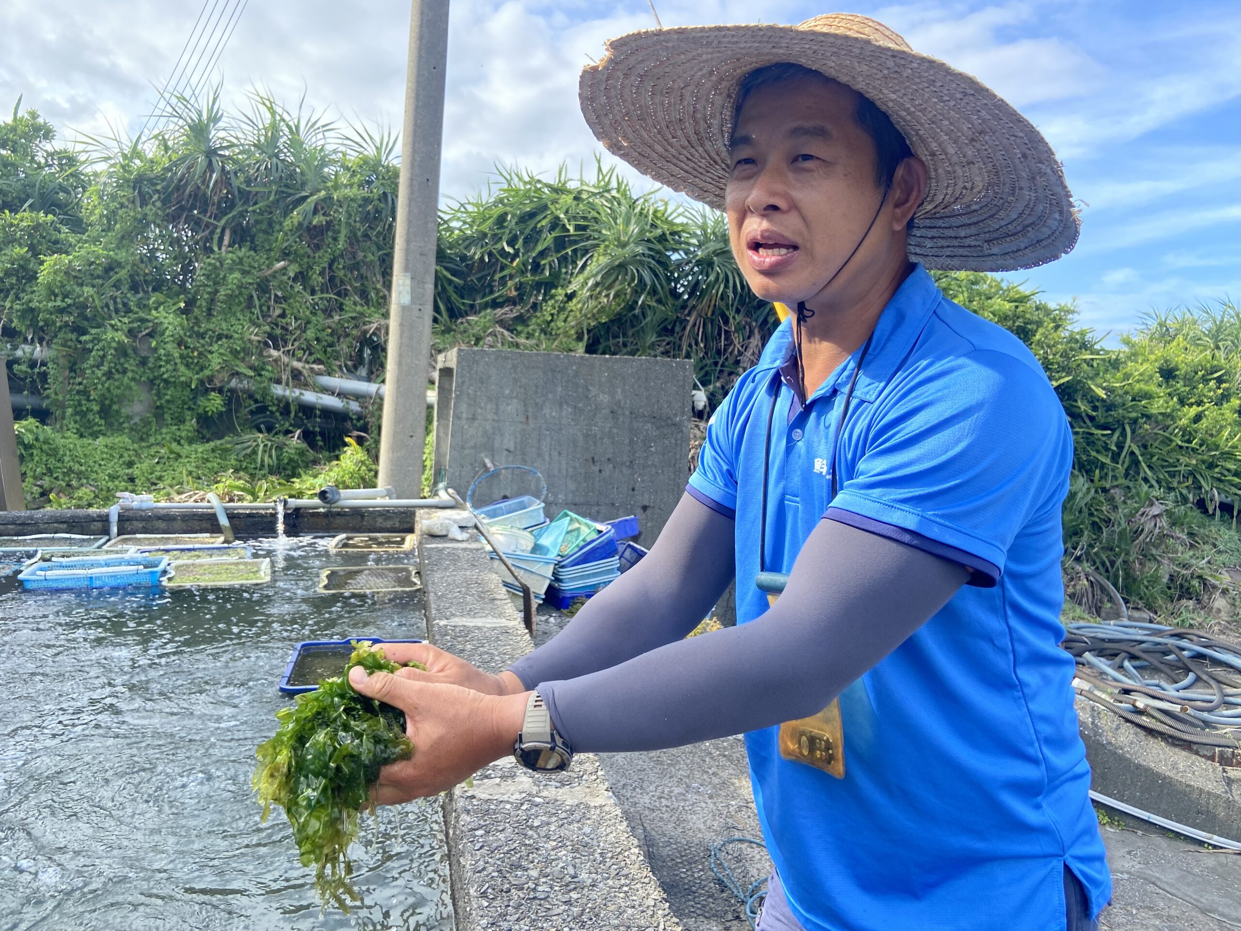 從推動水循環養殖法,堅持無毒無藥,以友善海洋的方式養殖將有「植物中的魚子醬」的海葡萄、白蝦、九孔進行生態友善混養,不僅讓同一批水可以流動循環三次養殖,更造就肥美鮮嫩的優質水產,成功透過產業復興讓九孔養殖池有再利用的可能。