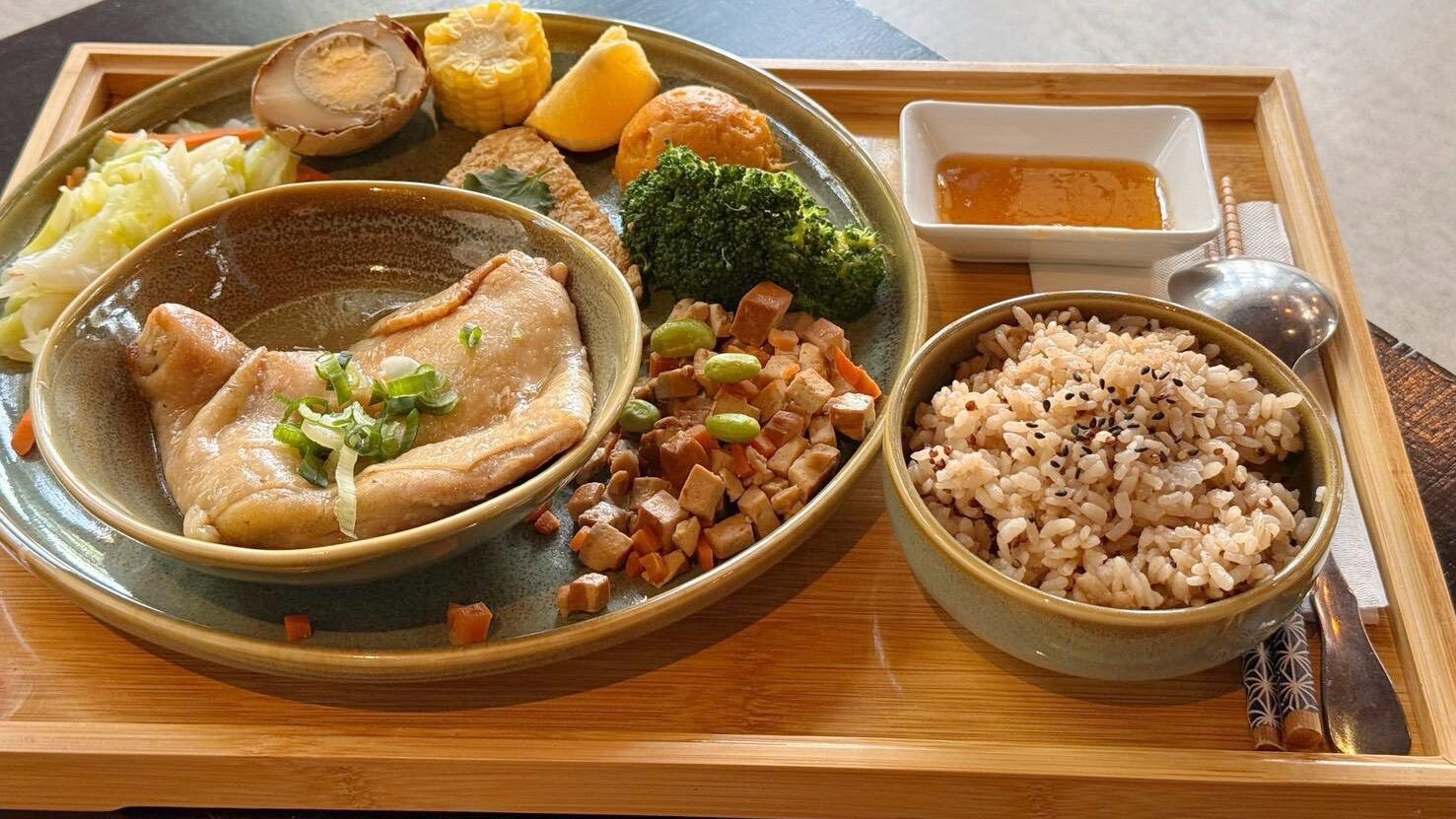 午餐享用「日月山房」精心設計的茶餐。食材選用在地種植的時蔬與肉品,並巧妙融入台茶18號(紅玉)的獨特香氣。我們堅持「食當季、吃在地」,減少食物里程(碳足跡),讓同仁吃到最新鮮、健康的食物,同時以實際消費支持堅持友善耕作的在地小農。
