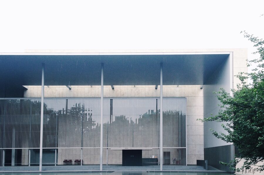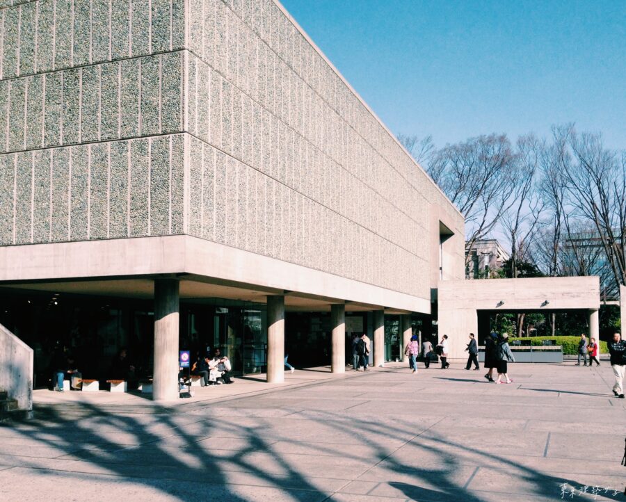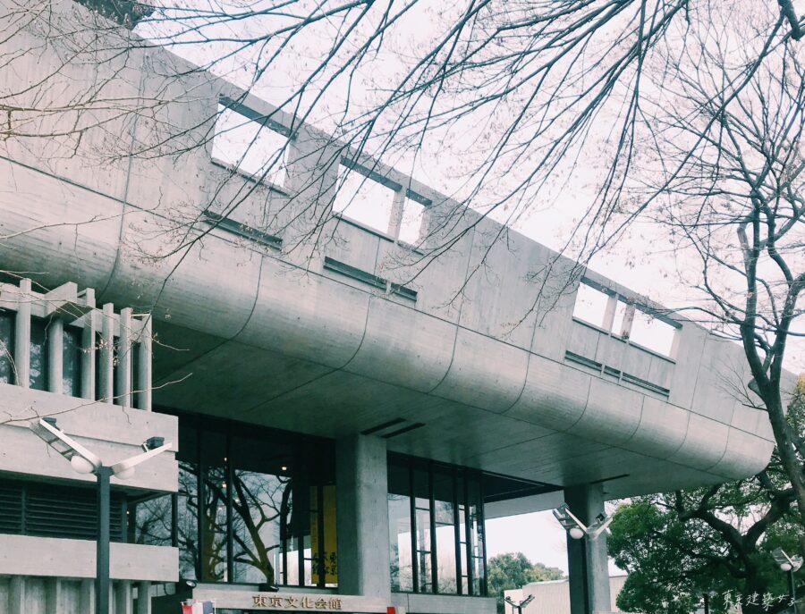 東京文化會館作為重要的藝文展演空間,由現代主義建築大師前川國男設計,以清晰的水平線條和簡約的幾何構造,展現出強烈的理性美學,架高的弧角屋頂可以看出前川國男受柯比意影響之痕跡,將藝術與建築完美結合。