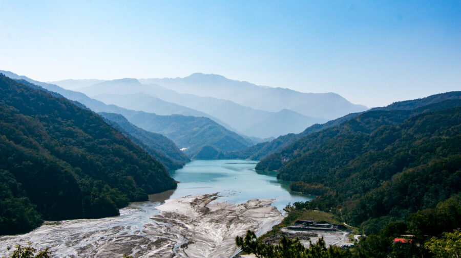 半露台座位迎著日光,眼前是塔洛灣溪與濁水溪匯流成的靜謐湖面;盤中則是刺蔥、馬告與當令野菜的清雅香氣。