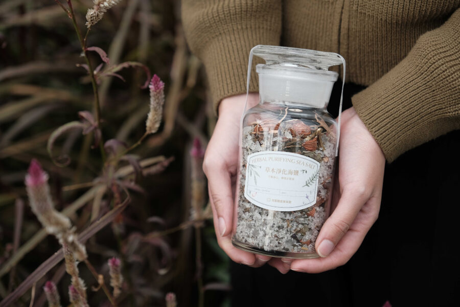 認識野草種類後,我們將具有特殊香氣與文化意涵的草植風乾,親手製作一罐屬於自己調香配方的野草淨化海鹽,淨化海鹽不只可以用來入浴、泡腳,亦可燃燒淨化空氣、避邪,兼具實用且讓生活更有儀式感。