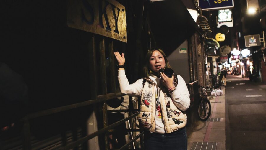 島內散步邀請在條通打拼 15 年的媽媽桑席耶娜,帶著我們經過長春路上氣派的台式酒店(當然除非你有打算海砸十萬塊的念頭,否則我們不進去),跟著走一遭林森北路,光是眼盯閃爍霓虹、耳聽幾個值回票價的故事,讓她們的導覽帶領我們就夠體會一遭了。